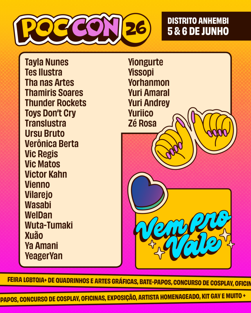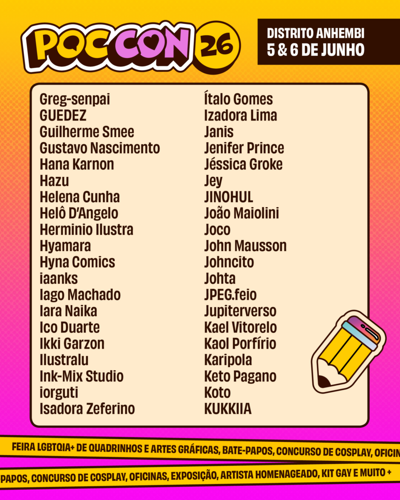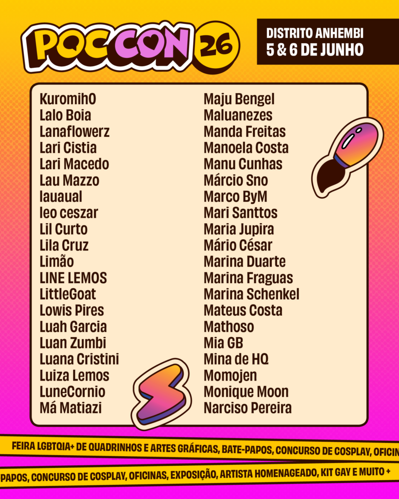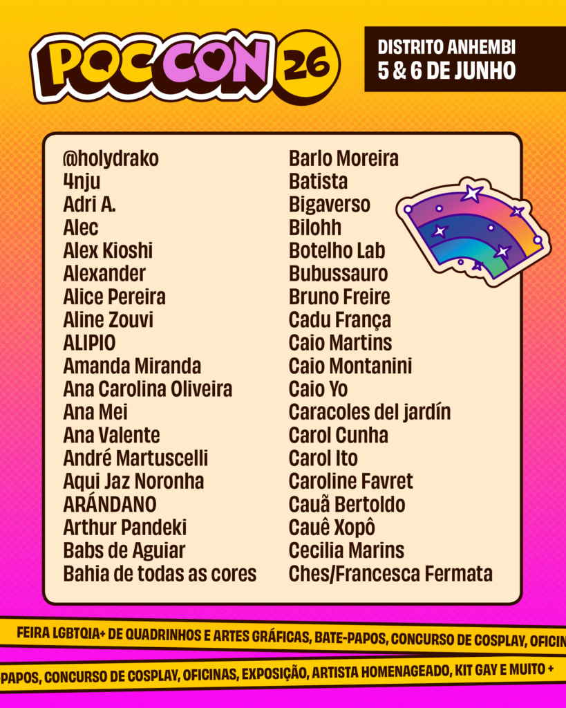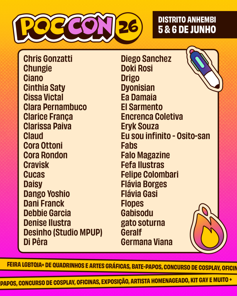 O crescimento da Poc Con reforça a força da produção queer nos quadrinhos e nas artes gráficas. A edição de 2026 reunirá artistas de todas as regiões do Brasil, além de convidados internacionais — incluindo três participantes vindos do Peru.