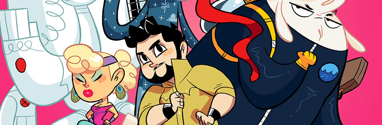 Esse quadrinho (Ross Boston) de uma clara ausência de personagens gays que fossem bem trabalhados, variados, únicos e que servissem pra mais do que mero alívio cômico. Eu queria uma história que fosse centrada nos personagens gays, cuja sexualidade pudesse ser o fio condutor das histórias ocasionalmente. Nem todos os personagens em “As Aventuras Super Gays de Ross Boston” são gays, mas todos eles têm propósitos e funções diferentes. Há o alívio cômico na forma do espirituoso alienígena gay Sassquatch Lavender, mas também temos o protagonista Ross Boston, o namorado babaca dele, Brian Bomber (que é tipo um vilão menor), e a ex-espiã super secreta Nickki Noelle, que tambem é a primeira personagem lésbica que eu já desenhei e escrevi, e uma das minhas personagens favoritas do elenco. Na verdade, existem outros personagens gays que são igualmente diversos, mas eu vou revelá-los com o tempo.