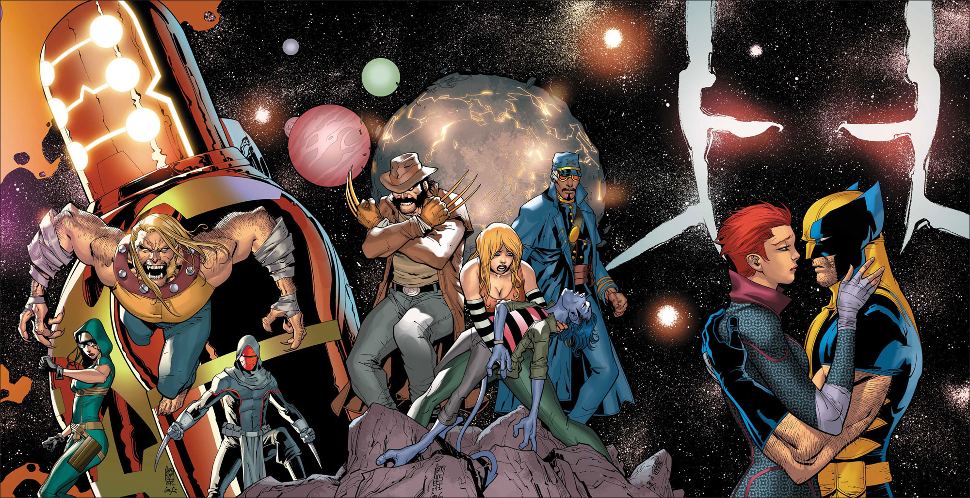 A ideia de estabelecer Howlett como um homem gay me ocorreu enquanto eu estava concluindo o arco em “Astonishing” e preparando “X-Treme X-Men”. Eu nunca havia visto um personagem gay nos quadrinhos mainstream que fosse exatamente como Howlett, e já que estamos fazendo um gibi sobre realidades alternativas, por que diabos não investir na ideia? Hércules foi o personagem perfeito como interesse amoroso por que já havíamos sugerido que Howlett tinha ligações com o místico/divino (em “Astonishing”, ele menciona que era o enviado de Sua Majestade a Shangri-La). E, claro, quando eu estava escrevendo “Incredible Hercules” com Fred Van Lente, nós seguimos os mitos gregos e sugerimos que Hércules teve encontros homoeróticos ocasionais.