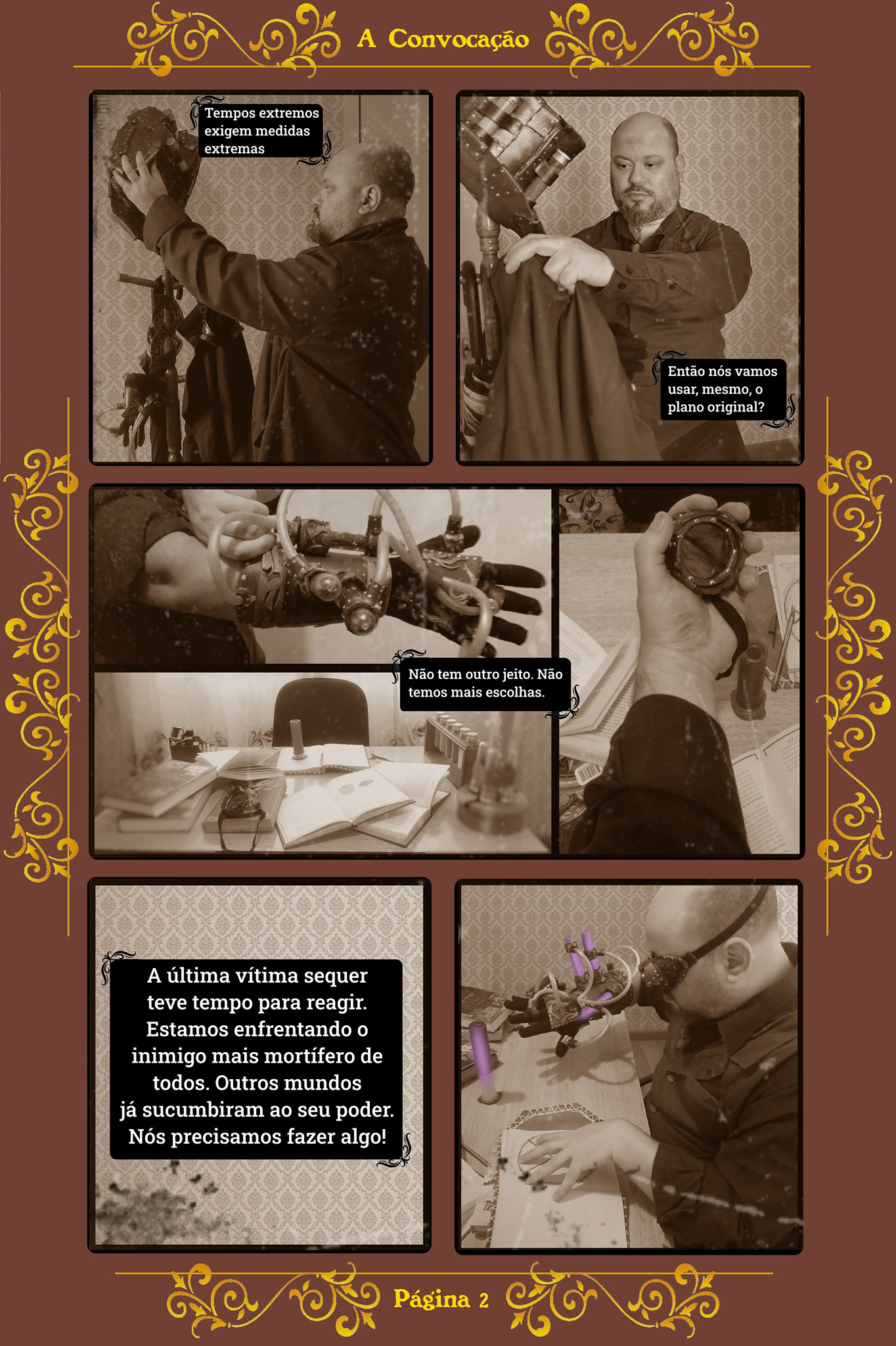 Os escritores TiwBras e Vindemiatrix lançaram ontem, no Facebook, o primeiro capítulo de uma fotonovela steampunk queer que faz parte do universo expandido da série literária Foguettes & Umbrarum, mostrando o casal Archibaldo Umbrarum e Edouardo Foguettes, professores de um escola de technomancia que, diante de uma ameaça iminente, tomam uma decisão que pode mudar tudo.