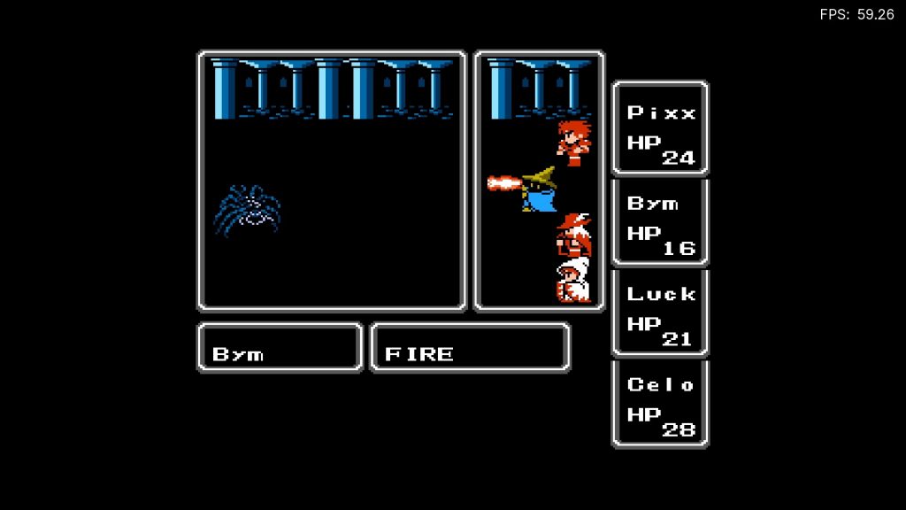 Um exemplo interessante é o primeiro jogo da série Final Fantasy, de Nintendinho/Famicom. Eu quero olhar especificamente para a versão original do jogo, de 1987: os gráficos dos consoles da terceira geração (master system e nintendinho, principalmente) são muito mais capazes de representar os conceitos que os desenvolvedores queriam apresentar nas telas de TV do que a geração anterior, como o Atari 2600, mas ainda assim esses pequenos sprites possuem muitas limitações de cores, animações, armazenamento…