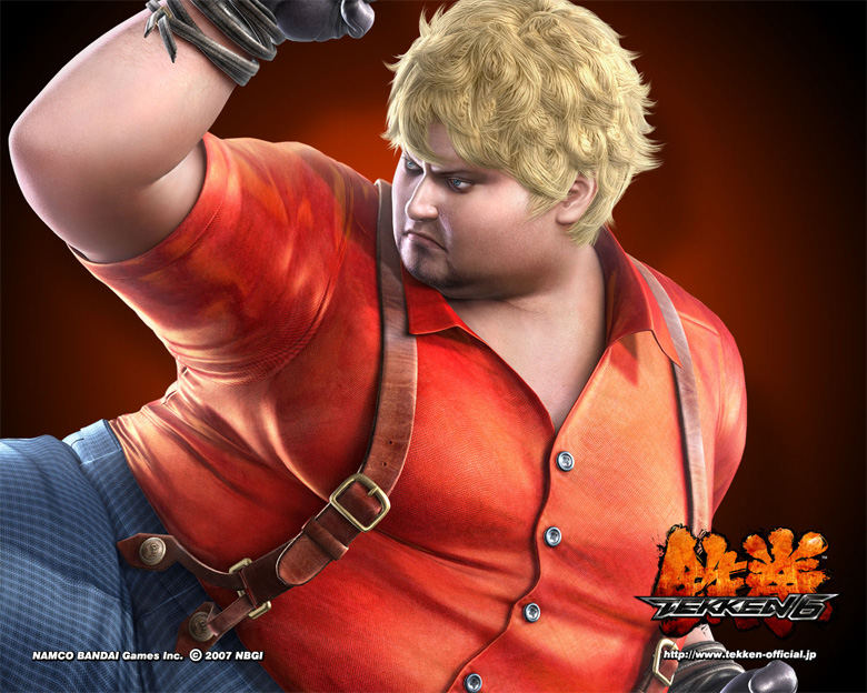 Bon surgiu na pouco antes que Rufus, do Street Fighter 4 e são personagens semelhantes. Gordos, agéis. Mas enquanto Rufus apela mais para o lado cômico, Bob transborda carisma. Ele é um chubby bear que tem orgulho de ser gordo além de possuir os clássicos suspensórios, reparem no emblema de abelha na sua camisa. seria uma forma discreta e original de se dizer que faz parte do movimento ursino? 😉