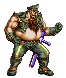 A SNK sempre preferiu investir em personagens inusitados. E Earthquake é um desses. Pra começar ele é um texano gordo gigantesco que viajou até o Japão para se tornar um ninja e treinou junto com o mestre do Galford. Mas se cansou do treinamento e munido de uma Nage Gama (uma espécie de corrente com uma foice em uma extremidade e um peso na outra). Voltou pros states e se tornou um ladrão e arruaceiro. Para vocês terem uma idéia da porralouquice do cara, quando apareceu a ameaça de Amakuza, ele voltou ao Japão somente para roubar as pessoas enquanto elas fugiam por suas vidas. Fora que um dos seus golpes mais marcantes no jogo era agarrar o oponete e peidar na cara dele…